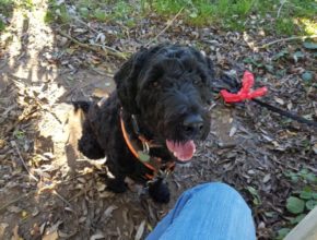 Cela c’est Kalle, mon chien d’assistance en formation. Il a ne qu’un an et je l’entraîne sous la surveillance de mon entraineur des chiens. Quand ma vie « avant Kalle » était une lutte constante de me lever et de sortir de la maison surtout pendant les week-ends, maintenant j’ai du devenir plus discipliné. Je crois que des fois c’est plus facile de faire quelque chose pour quelqu’un que « seulement » pour soi-même. Mais il y a des moments quand Kalle aboie à la lune, des vieux voisins ou même des poubelles ou je me demande si c’est vraiment le chien qui m’aide ou au retour. En fait j’ai plus du travail avec lui qu’avant et après l’entrainement à la maison il paraît avoir oublié tout quand nous sommes dehors. Mais ce n’est pas comme ça : Comme moi il est distrait de milles des odeurs, bruits et mouvements. Et quand il peut encore m’apporter des objets dans la maison, il les laisse tomber dehors et oublie complètement qu’ils sont là J.